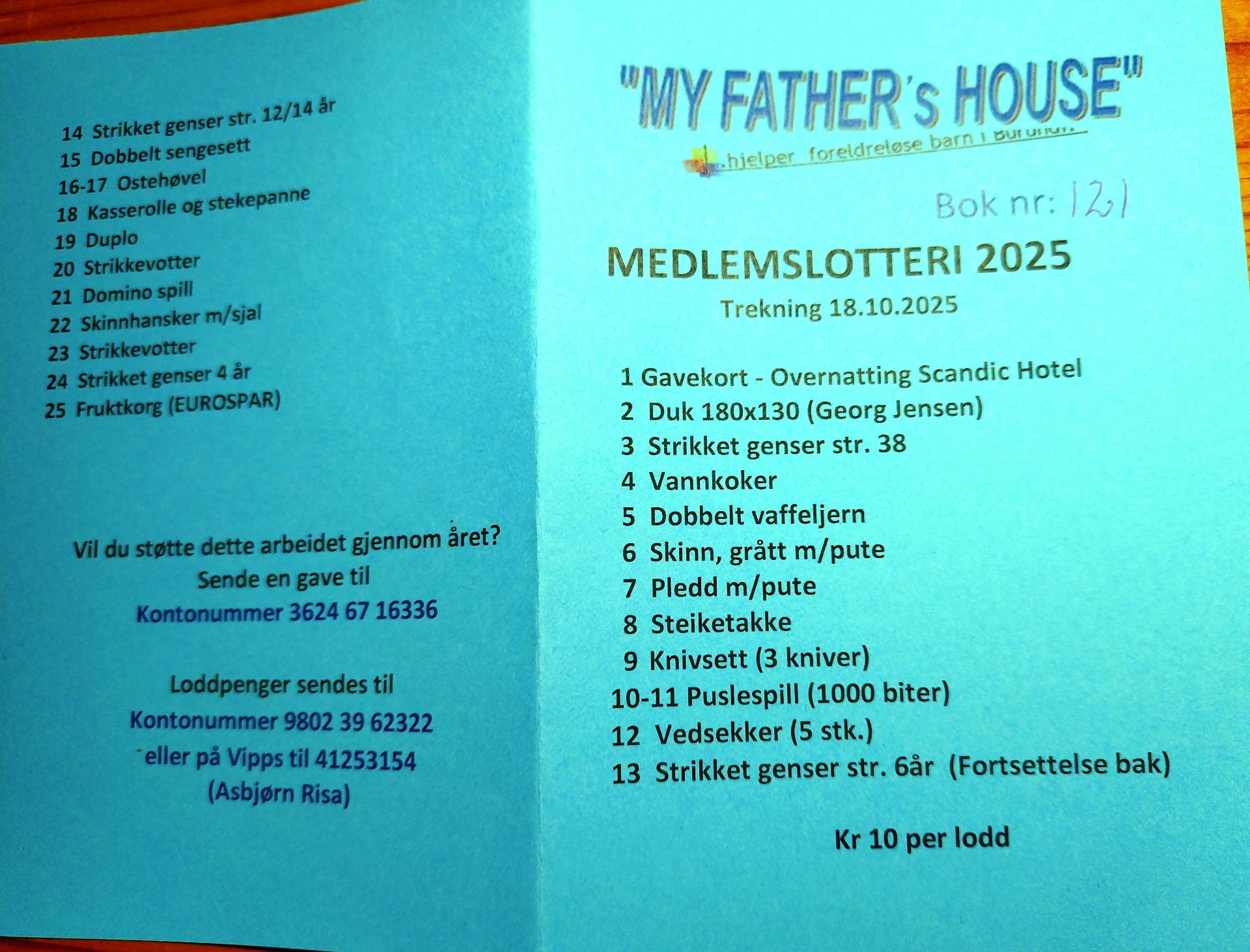 Du får svar med loddbok og nr på bok du hafr fått lodd i.